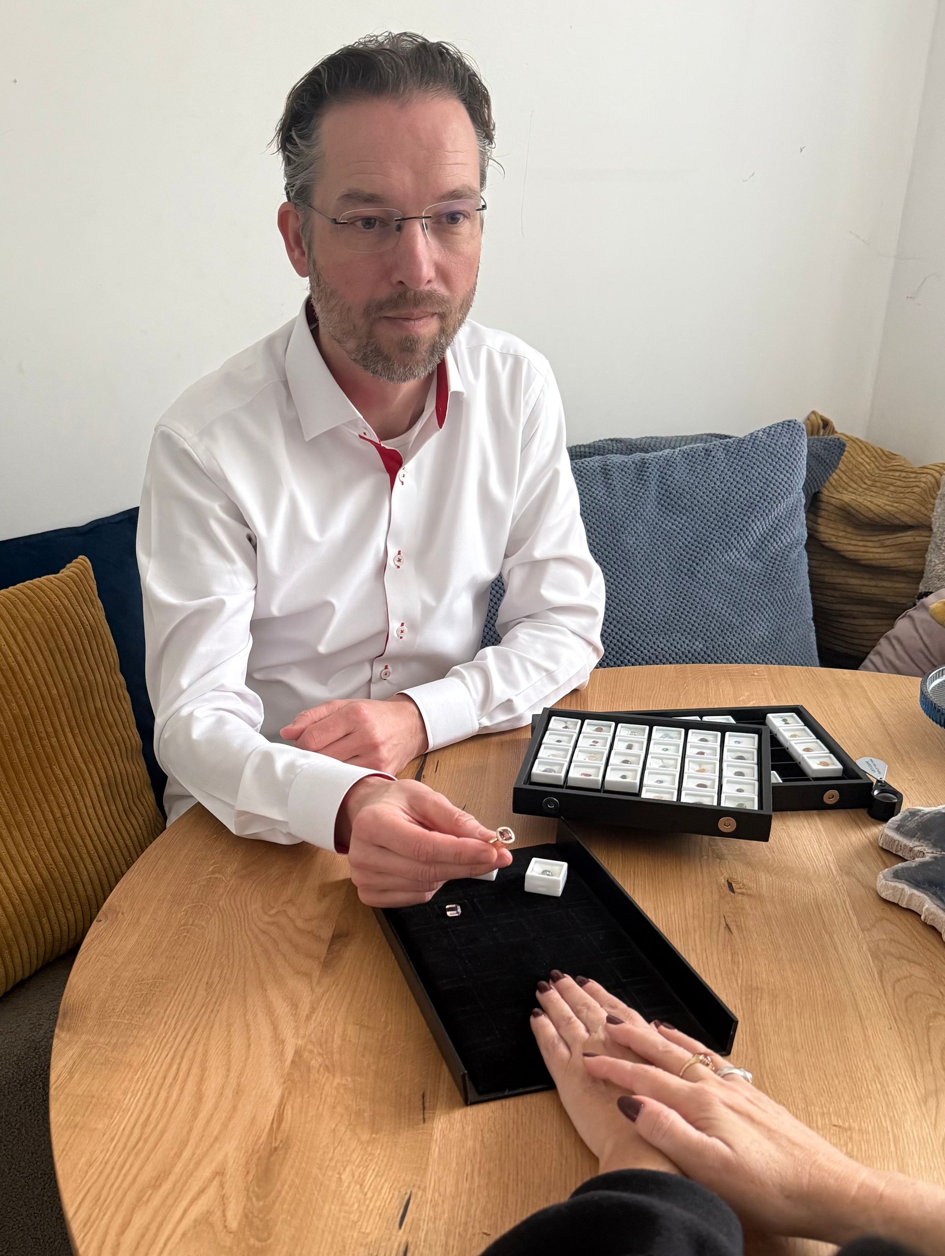 A piece of jewelry reflects your character and style. Designing one is a process full of choices. I'm happy to support you in that journey. Besides the alloy and color of, for example, 18-karat gold (yellow, rose/red, or white), there are countless possibilities. Together, we'll discover what suits you best.