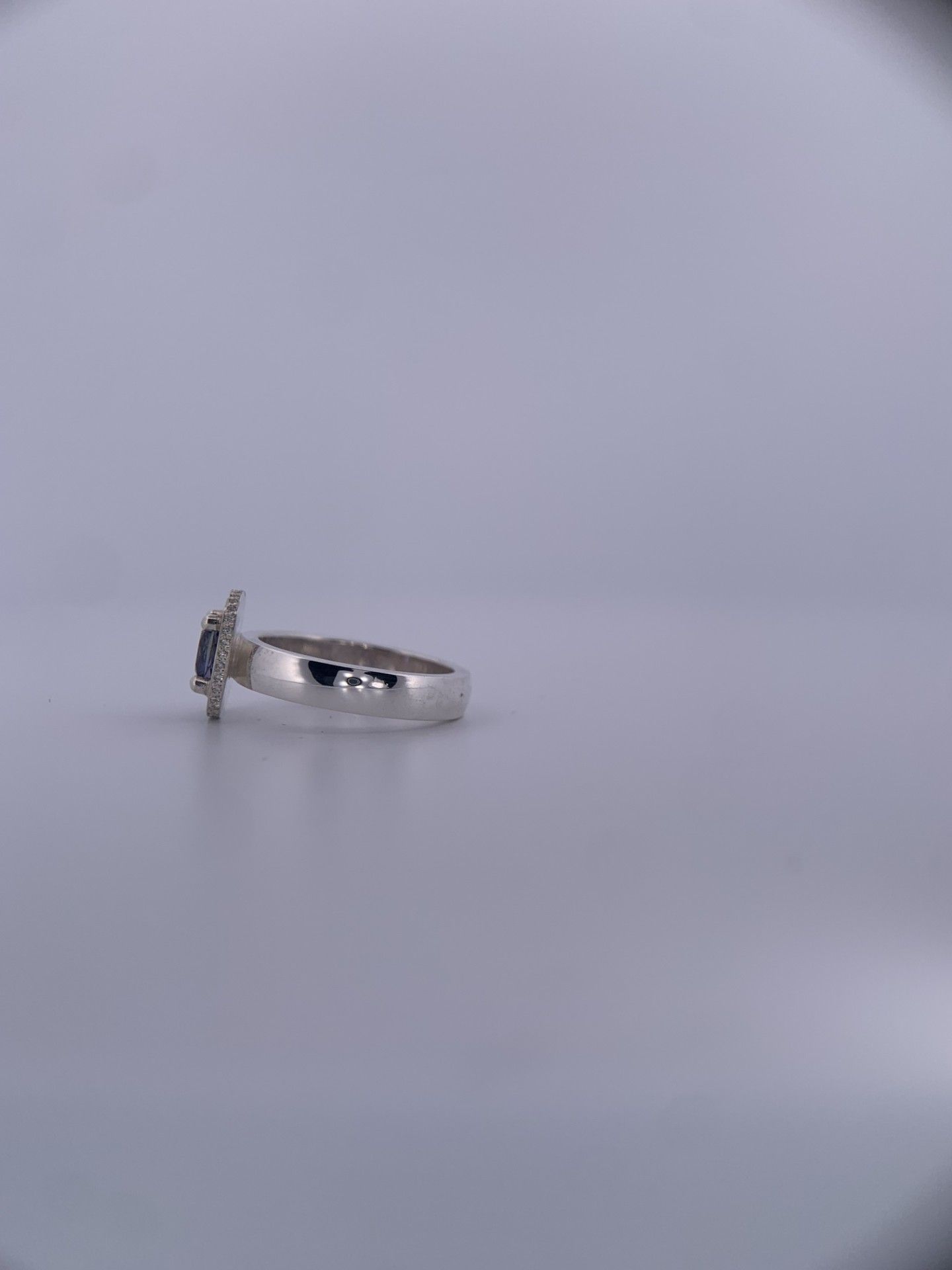 Een paarblauwe cushion‑geslepen tanzaniet vormt het hart van dit juweel. De zetting volgt de contouren van de steen en wordt omlijst door 36 pavé gezette diamanten die het licht vangen en versterken. Pure verfijning in een tijdloos ontwerp.